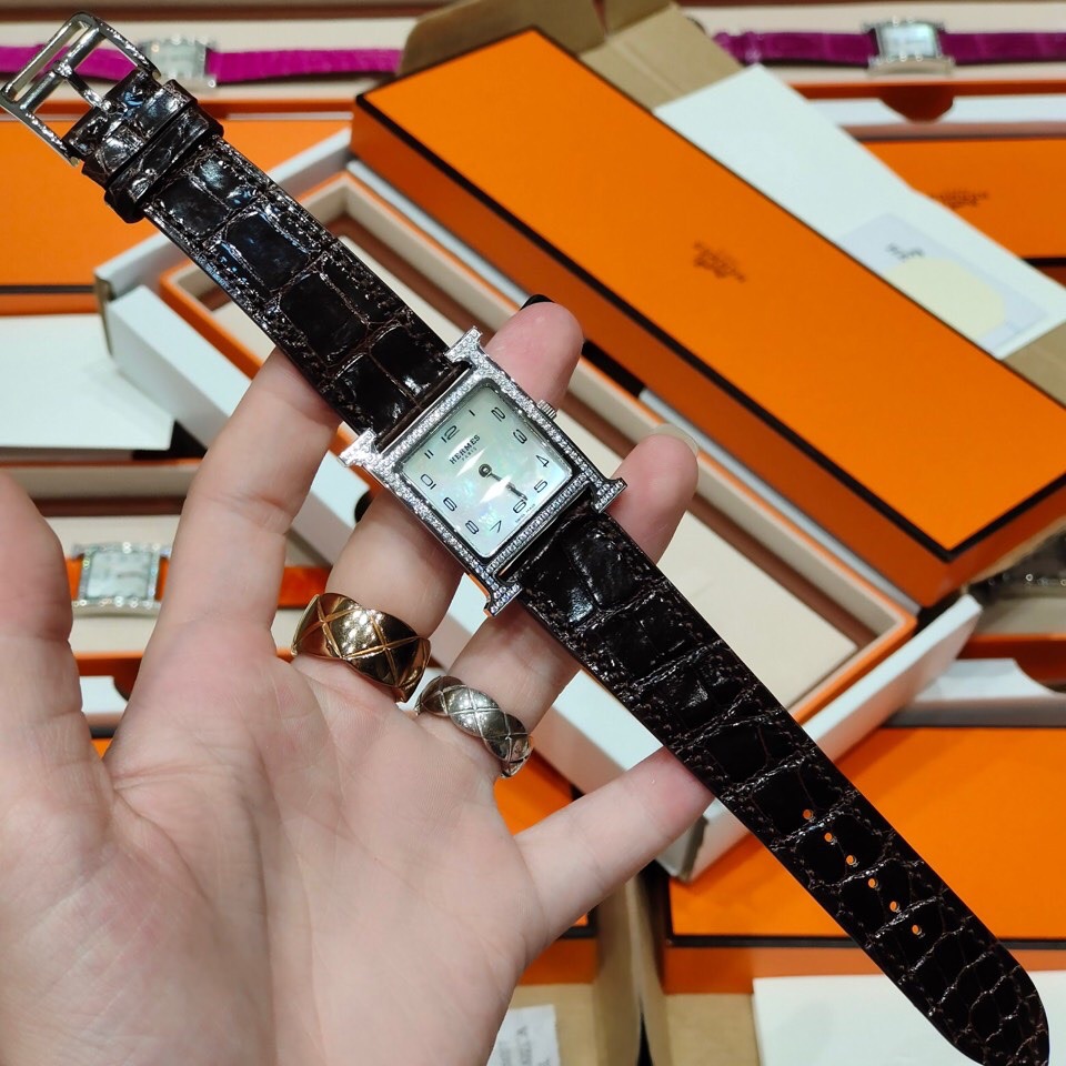 爱马仕镶钻手表价格及图片 Hermès Heure H Wrist watch 鳄鱼皮腕表