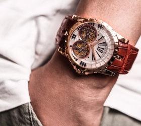 最具超跑运动元素的款式,镂空飞行陀飞轮腕表外观具有罗杰杜彼镂空时计的代表性特征