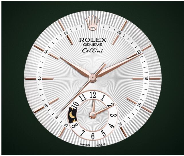 切利尼双时型的放射纹表盘不仅向传统制表的永恒法则致敬,并以典雅的现代风格重新演绎腕表精髓。颀长的钟点标记被分钟轨道一分为二,分钟轨道靠向表盘中央,贴近指针末端。如同所有劳力士腕表一样,钟点标记和劳力士皇冠标志均以18ct金制成。