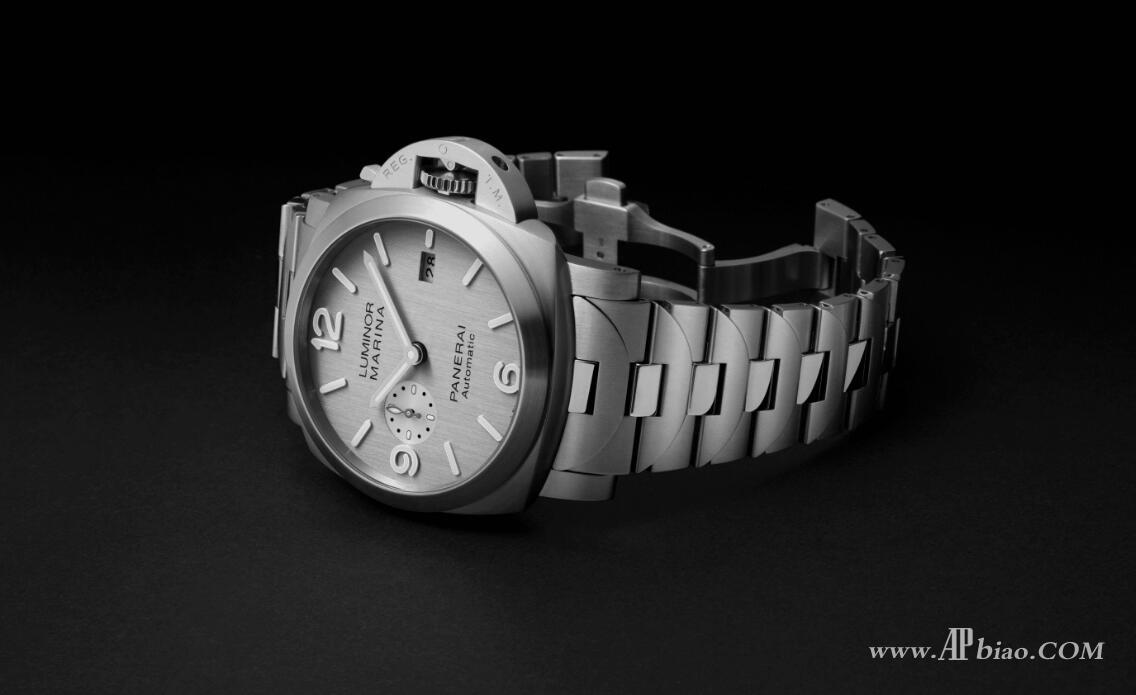 沛纳海推出新款luminor marina腕表,它所搭配的精钢表链与表壳浑然一体,链节设计灵感源自标志性的表冠护桥。 链节的外形仿似标志性的“桥形”表冠护桥,链节之间和谐整合(没有使用任何螺丝),由此形成一款符合人体工学的表链。表链柔软且佩戴舒适,充满运动气息,细节设计颇为精致,抛光和磨砂饰面交替分布。