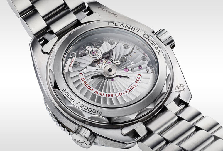 過去Planet Ocean的旋入式底蓋是在周圍做了六個凹槽,只要有一般的開錶器任何人都可以自行開啟,但新版則將外圈改成了波浪形的鋸齒,這麼一來除非有專門的設備否則無法隨便開蓋。這種做法很明顯地是為了杜絕非官方授權的代理店自行做維修,無論對錶主或是品牌來說,都更能確保手錶不會輕易遭到第三方介入,保持原廠出品的水準。此外從這裡也可以看出一些時代變化的痕跡,以前海馬搭載的8500機芯即使採用透明底蓋,但是它的抗磁性果相對普通,然後目前歐米茄手錶都已經慢慢更新成大師天文台認證機芯了,特徵就是即使不用軟鐵內殼保護機芯,光是透過機芯內部的非鐵材質零件,就能有把握抗磁抗到15,000高斯以上的程度,也因此新款更能理直氣壯地露出機芯讓佩戴者好好把玩一番。
