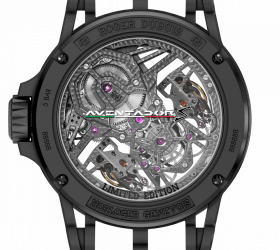 腕表搭载极具高复杂功能代表性的镂空飞行陀飞轮,此种看似矛盾的对比效果向来是罗杰杜彼复杂机芯的珍贵特色,将罗杰杜彼在高级制表上炉火纯青的精湛技艺体现无遗。罗杰杜彼也不轻易放过任何细节。手表特别配有可替换的RubberTech橡胶表带与表冠。在极致轻盈与绝佳舒适的特质下,此时计预计又会引起收藏家的高度兴趣。
