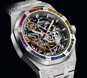 爱彼皇家橡树系列霜金镂空双摆轮腕表 2019年镶上多达32颗彩色蓝宝石