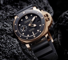 沛纳海推Submersible贵金属款PAM00974腕表 特制玫瑰金Goldtech配黑色陶瓷表圈
