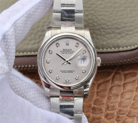 南京劳力士手表价格 日志型36系列m126200-0002腕表 银色镶嵌钻石表盘