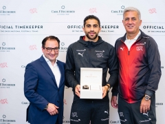 宝齐莱欧洲执行副总裁Renato Bonina 赠瑞士国家队队员 马利龙飞返计时码表